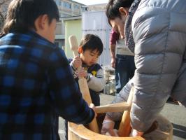 お客さまと太陽住宅スタッフそして大工さん、普段は家づくりに関してのお話がメインだけどこの時には”エイヤッエイヤッ”一緒になっておいしいお餅が頂けました(*^^)v