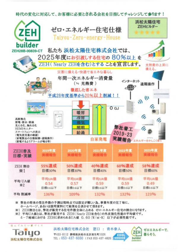 浜松太陽住宅 2023年度ZEHビルダーにおける実績報告と2025年度目標資料を公表させて頂きました。
