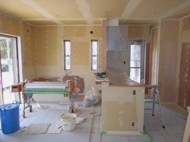 ◇今週の予定◇ 5月14日(月) *内部仕上げ<クロス下地パテ・クロス貼り> *タイル工事 5月17日(木) *外部給排水工事・浄化槽設置