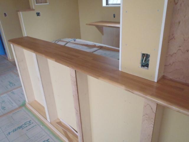 ☆先週の工事☆ 内部カウンター工事 外構、倉庫工事 ☆今週予定の工事☆ 内装工事(クロス下地パテ、クロス貼り) 倉庫工事