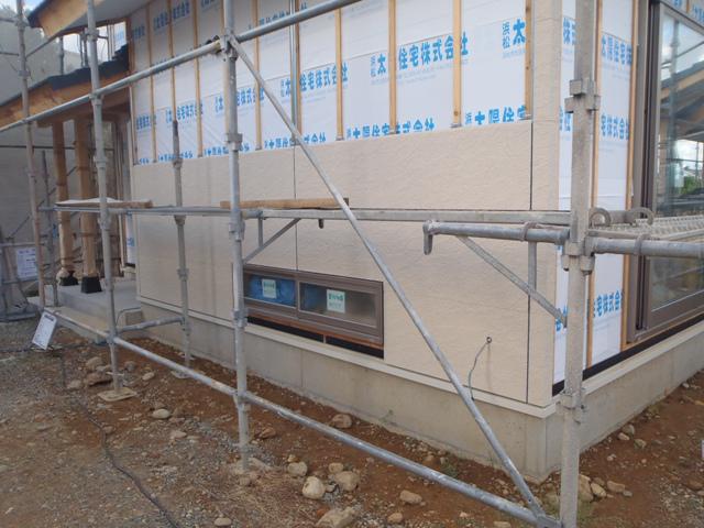☆先週の工事☆ 木工事(一階天井下地組み、断熱材入れ、外部下地組み、他) 外壁工事 ☆今週予定の工事☆ 木工事(床フローリング貼り、床養生) 外壁工事(防火サイディング貼り)