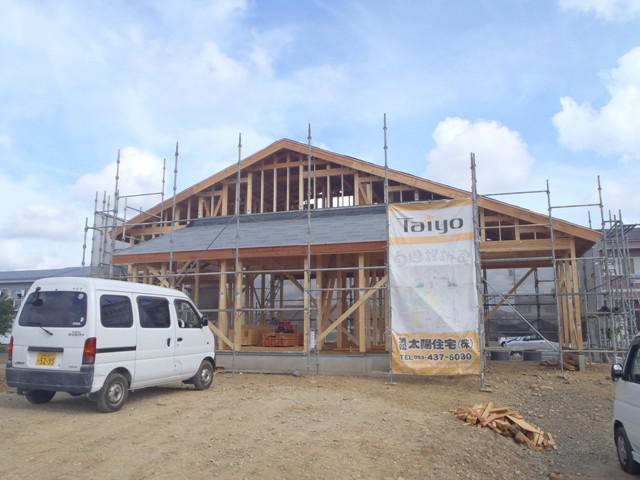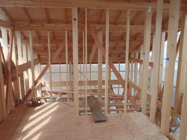 ☆先週の工事☆ 木工事(筋交い、間柱、構造金物取付) 屋根カラーベスト葺き ☆今週の工事予定☆ 木工事(間柱、構造金物取付、一階床下地) 屋根工事 防腐防虫処理