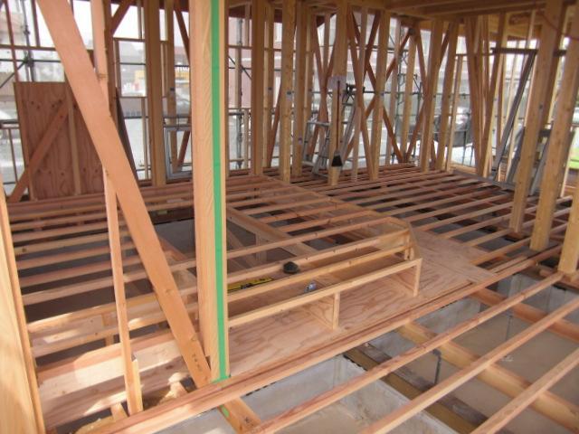 ☆先週の工事☆ 木工事(間柱入れ、構造金物取付、1階床下地、サッシ 取付、他) 屋根カラーベスト葺き 防腐防虫処理 ☆今週予定の工事☆ 木工事(1階床下断熱材入れ、下地合板、天井下地組み、 外壁下地打ち、他) 検査機構中間検査 JIO構造検査 外壁下地シート貼り