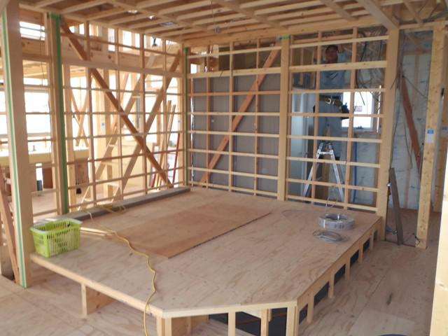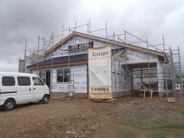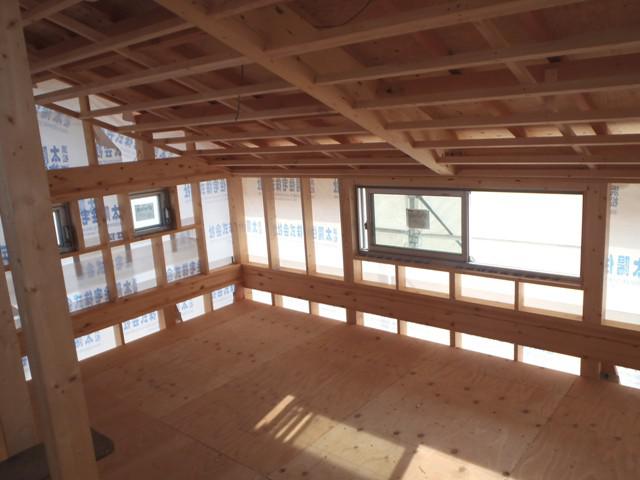 ☆先週の工事☆ 木工事(天井下地組み、軒天下地組み、軒天ボード貼り、 外壁下地打ち、他) 内部、給排水、給湯及び電気配線 ユニットバス据付 ☆今週の予定工事☆ 木工事(軒天ボード貼り、外壁下地打ち、天井、壁断熱材入れ、 他)