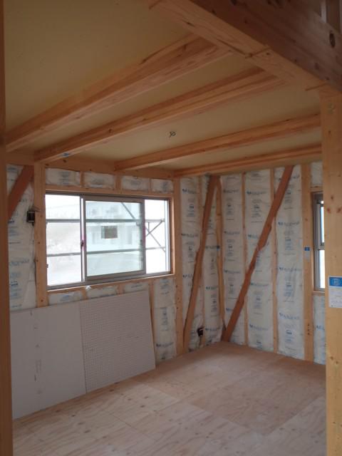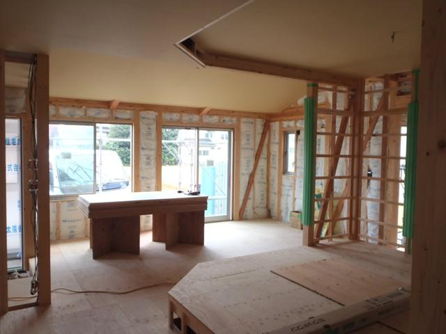 天井のPBボードが張られ天井の高さが分かるようになりました! 今週から外壁工事に入って行きます!