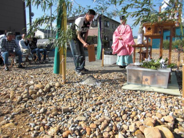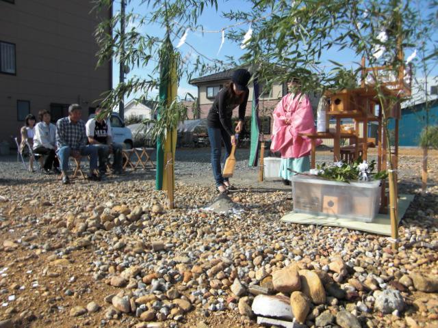 秋晴れの良い日に地鎮祭が執り行われました! 申請関係で長らくお時間頂きましたけれども、いよいよ着工です!Y様おめでとうございます!!