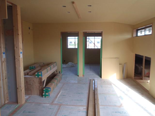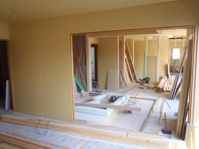 ☆先週の工事☆ 木工事(床無垢フローリング貼り、壁断熱材入れ 壁ボード貼り、和室造作、他 ☆今週の工事☆ 木工事(壁ボード及び合板貼り、開口枠取付、他)