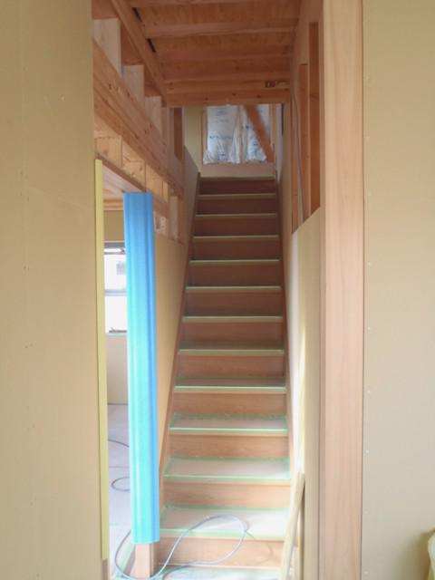 ☆先週の工事☆ 木工事(外壁下地材打ち、壁ボード貼り、窓枠・ドア枠取付 階段造作、他) 外壁工事(サイディング貼り、他) ☆今週の工事☆ 木工事(階段造作、壁ボード及び下地合板貼り、棚類取付 廻し縁取付、他) 外壁工事(サイディング貼り、他)