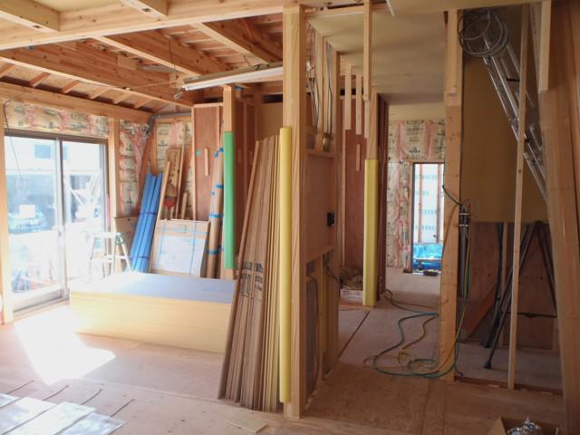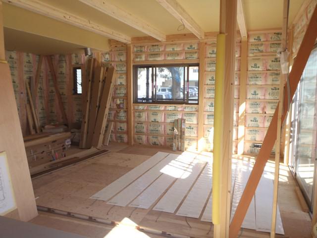 ☆先週の工事☆ 木工事(床仕上げ材貼り、壁ボード貼り、窓枠取付、他) ☆今週の工事☆ 木工事(床仕上げ材貼り、壁ボード貼り、窓枠取付、他)