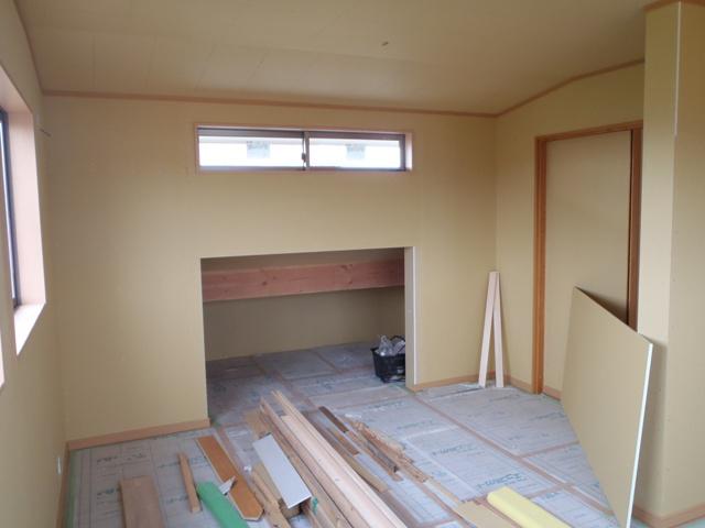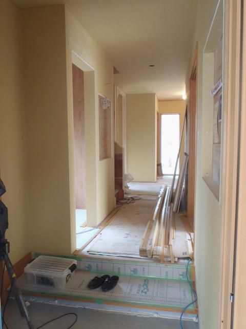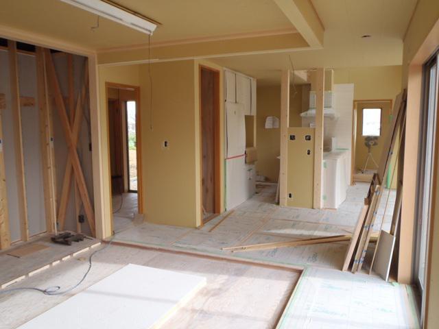 ☆先週の工事☆ 木工事(外部面格子取付、壁ボード及び合板貼り、 和室造作、幅木、廻縁取付、他) 外部足場解体 外部給排水埋設 ☆今週の工事☆ 木工事(和室造作、幅木、廻縁取付、他) 内装仕上げ工事(クロス下地)、外部給排水埋設