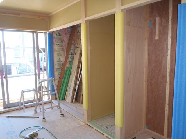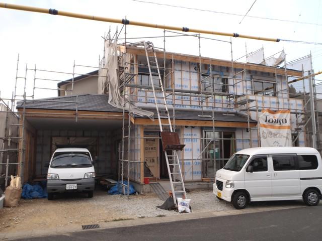 ☆先週の工事☆ 木工事(床仕上げ材貼り、壁ボード貼り、開口枠取付、 階段造作、他) ☆今週の予定工事☆ 木工事(壁ボード貼り、開口枠取付、階段造作、腰板貼り、 棚類取付、他) 外壁工事(サイディング下地、サイディング貼り)