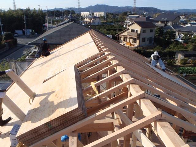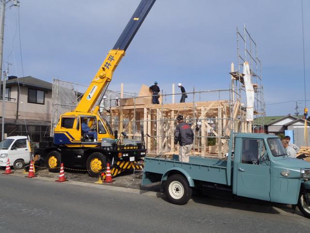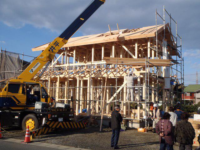 上棟おめでとうございます!!天気も良く餅投げには多くの方に集まって頂き盛大に建前ができました!これから段々と寒くなりますが、着々と工事を進めて行きたいと思います。