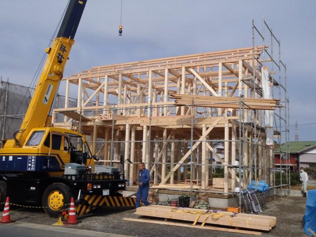 ☆先週の工事☆ 基礎工事(型枠解体、埋め戻し整地)・上棟準備、構造材般入、 土台据え 上棟 外部足場組 屋根下地葺き ☆今週の予定工事☆ 木工事(屋根下地、間柱・筋カイ入れ、構造金物取付、他)