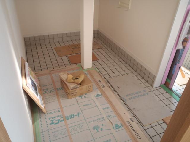 ☆先週の工事☆ 内部衛生・電気器具付け、他 外部給排水埋設、他 テラス、コートライン据付 玄関、タイル工事 テラス組立 左官工事(基礎幅木モルタル、エコキュートベース コンクリート) ☆今週の予定工事☆ テラス組立 土間コンクリート ハウスクリーニング 完了検査