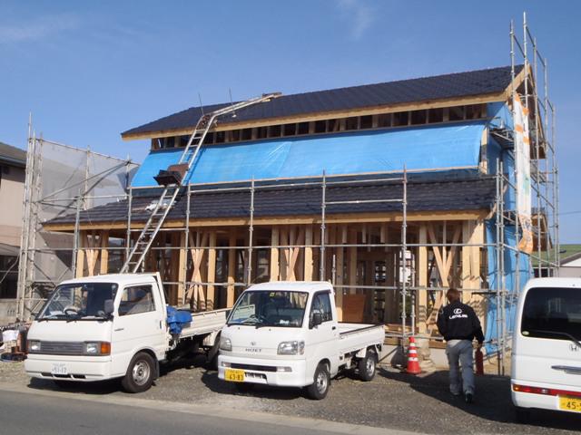 ☆先週の工事☆ 木工事(間柱・筋カイ入れ、構造金物取付、2階床下地、他) 屋根工事(瓦葺き、棟瓦、役物瓦取付) ☆今週の予定工事☆ 木工事(構造金物取付、2階下地、ベランダ下地、他)