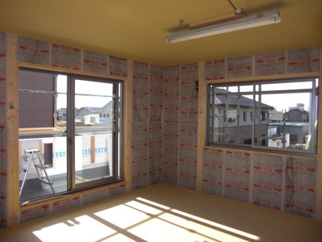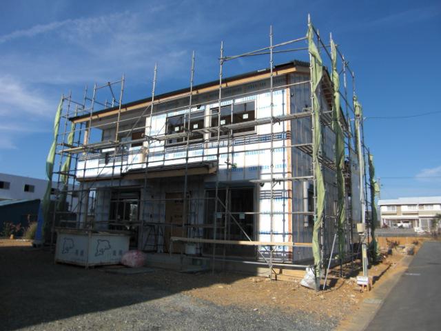 ☆先週の工事☆ 木工事(軒天下地組み及びケイカル板貼り、外部胴縁打ち、床ボ ード貼り、他) ユニットバス据付 ☆今週の予定工事☆ 木工事(フローリング貼り、窓枠取付、開口枠取付、他) 外壁工事(サイディング貼り)