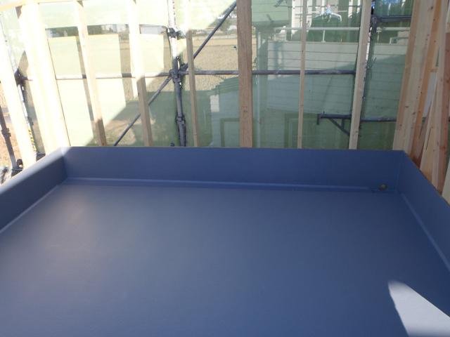 先週、バルコニーの防水工事が終わりまして、屋根工事も完了いたしました。今週は大工さんに耐震金物の取付やサッシの取付が進んで行きます。月曜日にはJIOの中間検査が入ります。