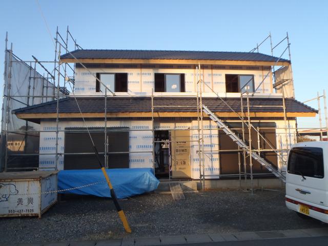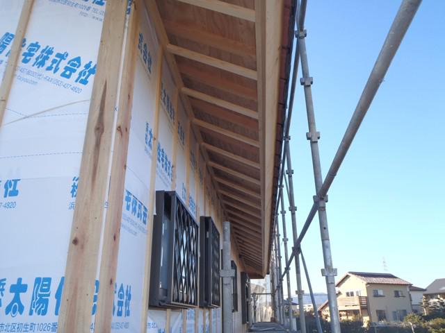 ☆先週の工事☆ 木工事(外壁下地、軒天下地組み及びケイカル板貼り、他) 内部電気配線 JIO外装下地検査 ☆今週の予定工事☆ 木工事(軒天ケイカル板貼り、天井下地組み、他)