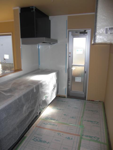 ☆先週の工事☆ 木工事(幅木・廻縁取付、棚類取付、他) キッチン据付 内装クロス工事(パテ塗り) タイル工事 ☆今週の予定工事☆ 内装クロス工事(パテ塗り、クッションフロアー貼り、 クロス貼り) 左官工事(基礎幅木塗り、勝手口階段)