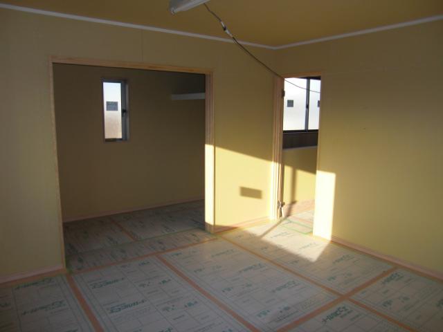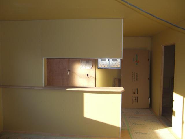 大工工事が進み、室内の壁ボードがほとんど終わりました!室内の大きさが現場で確認できます!
