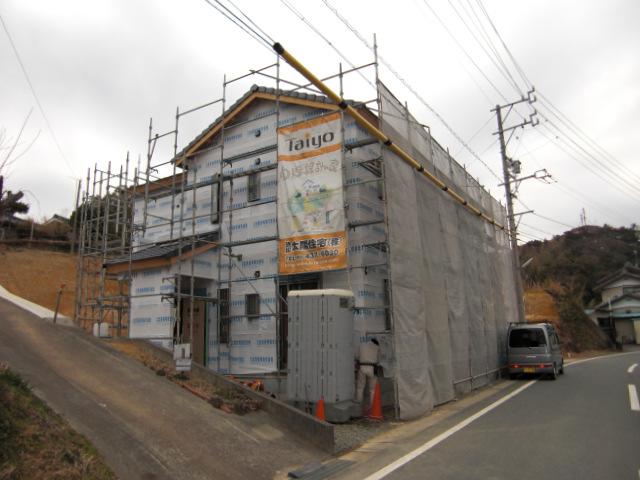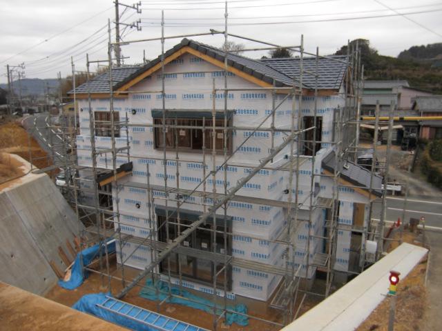 建物外周りに透湿防水シートがぐるっと巻かれ、建物の輪郭がでたり、雨水の侵入を防ぐ事ができる様になりました!