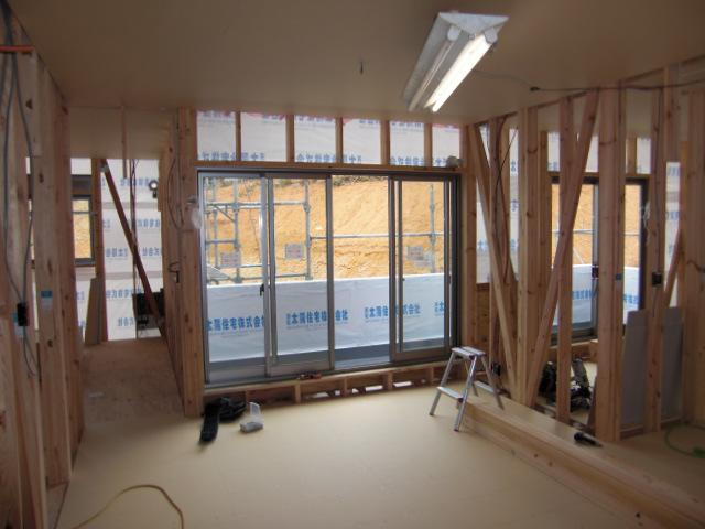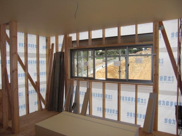 ☆先週の工事☆ 木工事(1階床下地組み、2階床ボード貼り、他) 外壁工事(透湿防水シート貼り、土台水切り取付) 電気工事(電気配線) ☆今週の予定工事☆ 木工事(1階天井下地組み、天井ボード貼り、他) 外装下地検査