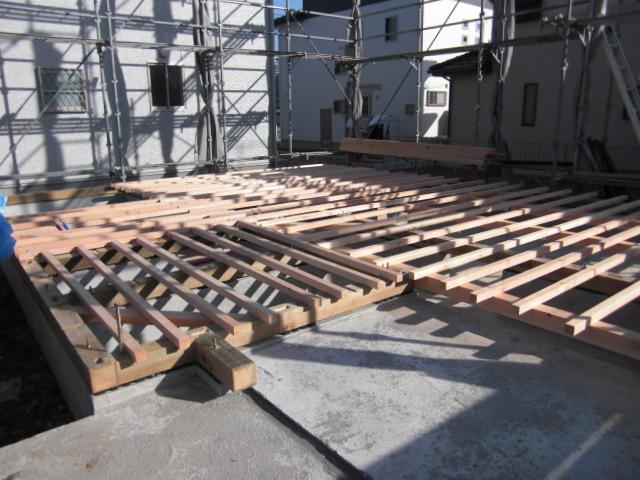 ☆先週の工事☆ 外部足場設置 木工事(墨出し、土台据付、他) ☆今週の予定工事☆ 上棟準備 上棟 木工事(筋カイ・間柱取付、構造用金物 取付、他)