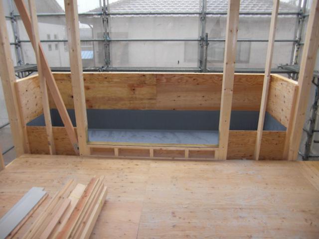 木工事、ベランダ・一階床・サッシの下地組みを行いました。今週の初めに指定検査機関と瑕疵保険会社の検査を予定しております。