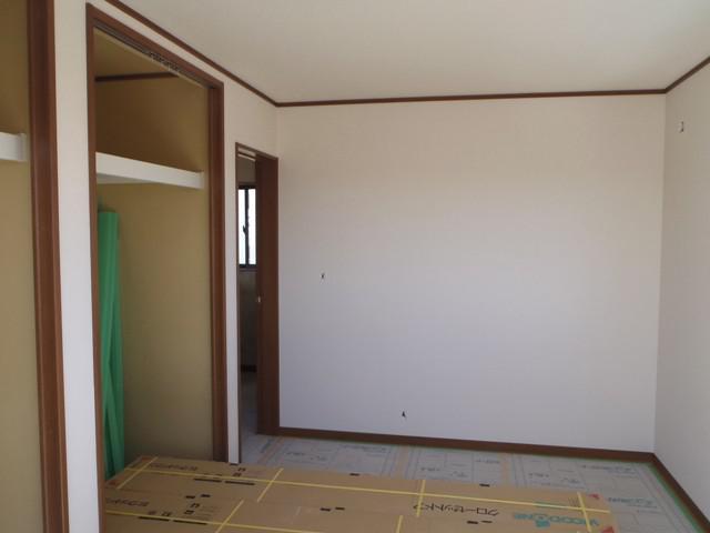 ☆先週の工事☆ 木工事(和室造作、幅木、廻し縁取付、建具吊り込み、他) 内装仕上げ工事(クロスパテ、クロス貼り) 外部給排水埋設 玄関ポーチタイル塗り ☆今週の予定工事☆ 内装仕上げ工事(クロス貼り、クッションシート貼り) 電気器具・プレート類取付 外部給排水埋設