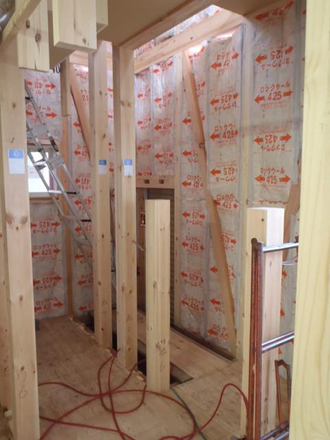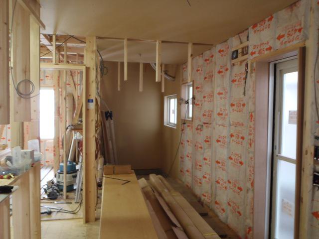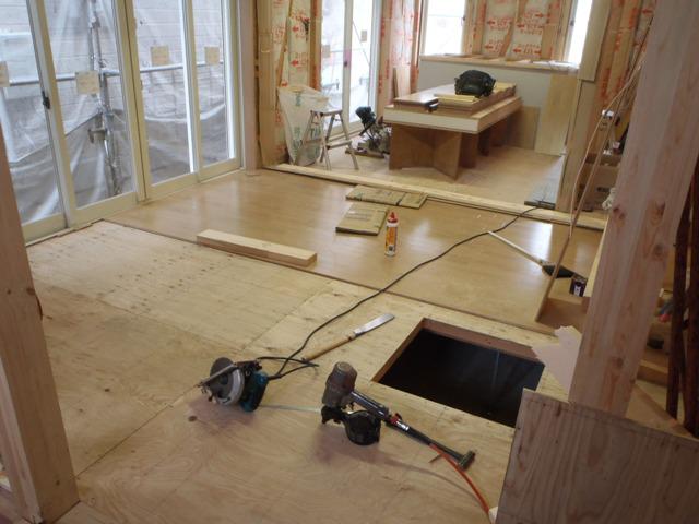 木工事、壁断熱を入れ終えまして一階より床フローリング貼りに取りかかりました!今週より外壁工事に取り掛かります。