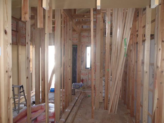 ☆先週の工事☆ 木工事(2階床下地ボード貼り、床フローリング貼り、窓枠取付 内部胴縁打ち、壁ボード貼り、他) 外壁工事、サイディング貼り、目地コーキング打ち ☆今週の予定工事☆ 木工事(内部胴縁打ち、壁ボード・下地合板貼り、 ドア・開口造作、他) 軒天塗装 板金・樋工事