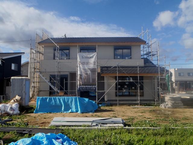 外壁工事が完了致しました!内部は大工による床フローリングを引き続き進めております。今週は屋根の板金工事・雨樋工事に取り掛かっていきます!