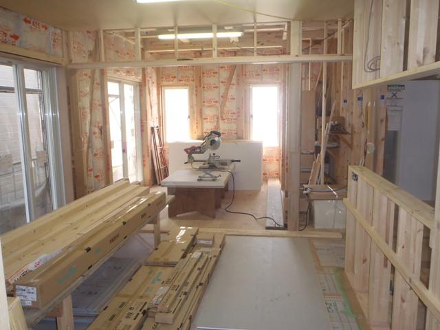 ☆先週の工事☆ 木工事(窓枠取付、壁ボード及び下地合板貼り、床フローリング貼り 他) 外壁工事(サイディング下地、サイディング貼り、他) ☆今週の予定工事☆ 木工事(壁ボード及び下地合板貼り、ドア枠・開口枠取付、他) 外壁工事(サイディング貼り、目地コーキング打ち、他)