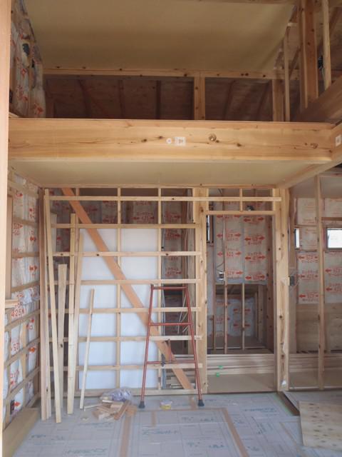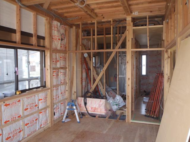 今週、外部の板金工事や雨樋工事を予定しております。内部大工工事は着々と壁下地を進めております。