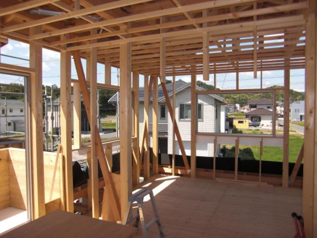 木工事が進んでおります!土地(53.56坪)建物(35.95坪)オール電化・照明・カーテン・太陽光発電付き・税込で2,373万円で販売も開始しました!お気軽にお問い合せ下さい。