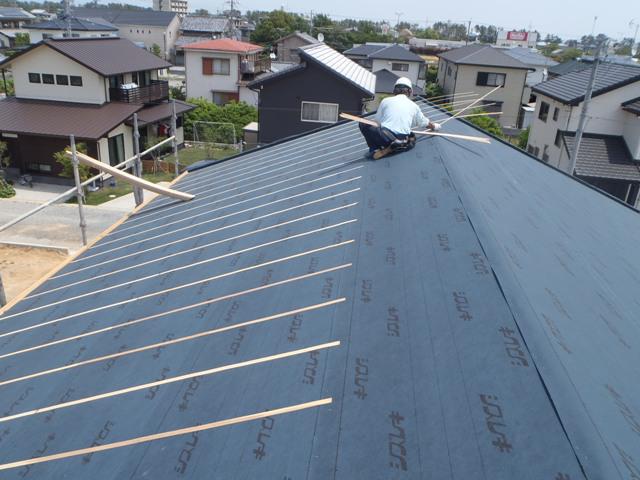 ☆先週の工事☆ 上棟 木工事(筋カイ・間柱入れ、下屋化粧垂木、他) 屋根下地ルーフィング葺き ☆今週の予定工事☆ 木工事(構造金物取付、2階床下地組、他) 屋根工事(瓦下地、瓦葺き)