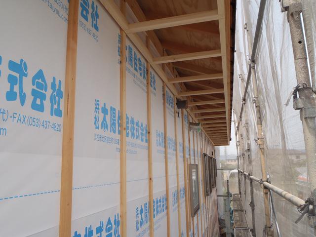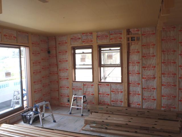 ☆先週の工事☆ 木工事(軒天ケイカル板、壁断熱材入れ、天井下地組み、 天井ボード貼り、2階床下地ボード、他) 外壁工事(サイディング下地、サイディング貼り) ☆今週の予定工事☆ 木工事(2階床下地ボード・フローリング貼り、1階天井下地 組み、他) 外壁工事(サイディング下地、サイディング貼り)
