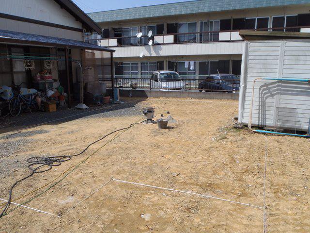 ☆先週の工事☆ 基礎工事(丁張り、掘削、他) ☆今週の予定工事☆ 基礎工事(掘削、砕石敷き、土間シート敷き、他)