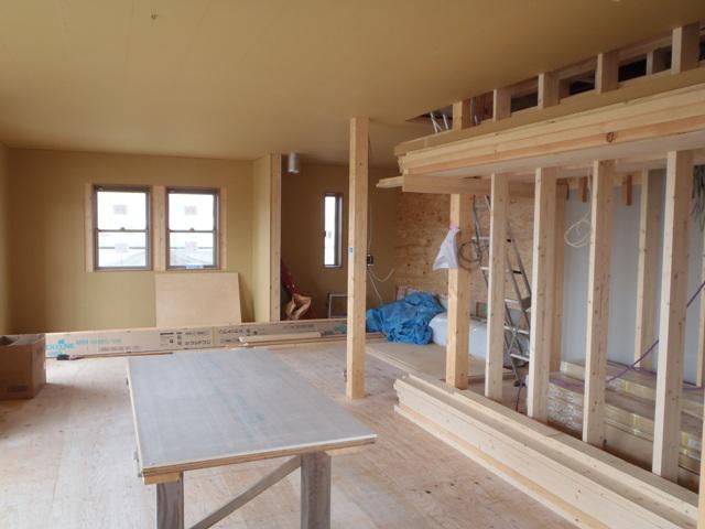 ☆先週の工事☆ 木工事(2階床下地ボード・フローリング貼り、 1階天井下地組み、他) 外壁工事(サイディング下地、サイディング貼り) ☆今週の予定工事☆ 木工事(2階ドア・開口枠取付、壁ボード貼り、内部造作、他) 外壁工事(サイデジング貼り、コーキング打ち)