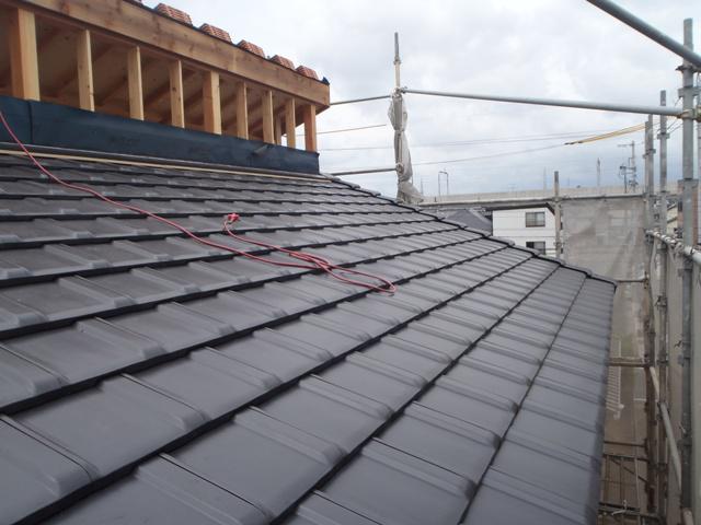 屋根工事の瓦葺きが完成間近になりました!今週には防腐防蟻処理を行う予定です。現場内が整理整頓され、綺麗に掃除されています!
