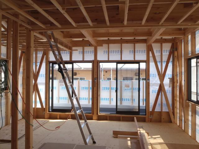 ☆先週の工事☆ 木工事(軒天下地組み、ケイカル板貼り、天井下地組み、他) ☆今週の予定工事☆ 木工事(2階床下地ボード貼り、天井断熱材入れ、他) 内部電気配線・配管