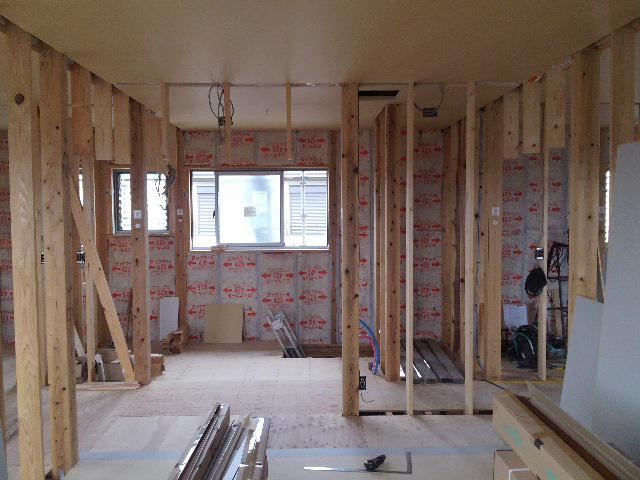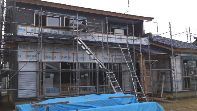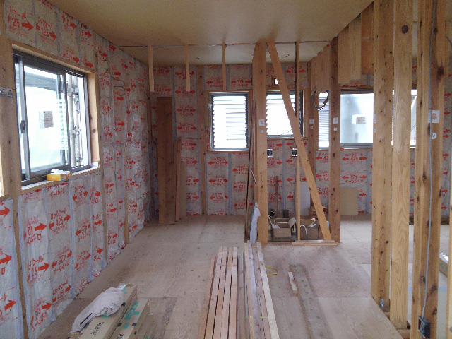 外壁工事が順調に進んでおります!内部大工工事も一階の壁断熱が入り、天井下地や二階の床など施工しております!