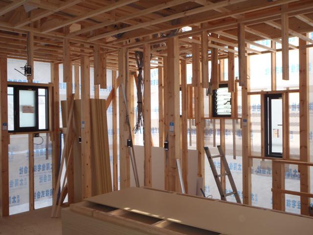 ☆先週の工事☆ 木工事(2階床下地ボード貼り、天井断熱材入れ、他) 内部電気配線・配管 JIO外装下地検査 ☆今週の予定工事☆ 木工事(2階床下地ボード貼り、天井断熱材入れ、他) 外壁工事(コーナー材スターター金具取付、サイディング貼り)