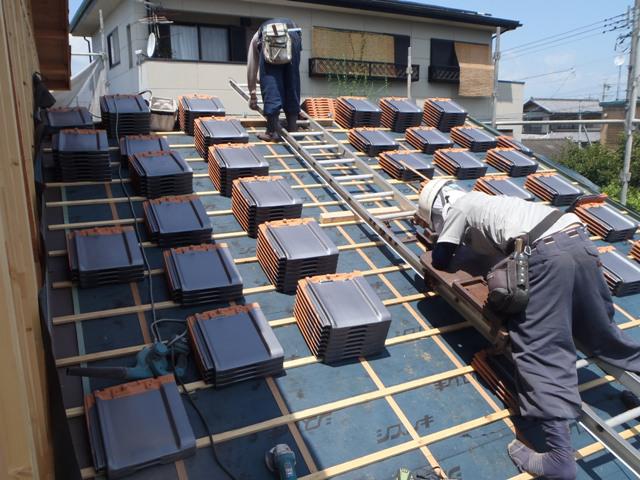 ☆先週の工事☆ 木工事(筋カイ・間柱入れ、構造金物取付、他) 屋根工事(河原下地、瓦葺き、他) 太陽光パネル設置 ☆今週の予定工事☆ 木工事(構造金物取付、2階床下地、他)