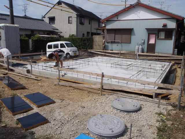 ☆先週の工事☆ 基礎工事(鉄筋組み、ベース型枠組み、ベースコン打ち、 立ち上り型枠組み、立ち上り生コン打ち) 保証機構、配筋検査 ☆今週の予定工事☆ 基礎工事(型バラシ、埋め戻し整地) 上棟準備、土台据え 足場組み、上棟