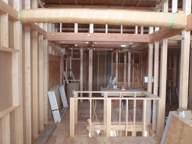 ☆先週の工事☆ 木工事(外壁面材打ち、サッシ取付、ベランダ下地、 軒天下地組み、他) 屋根GL葺き 保証機構・検査機構・中間検査 ☆今週の予定工事☆ 木工事(軒天下地組み、天井下地組み、他) 内部電気配線・配管 ベランダFRP防水