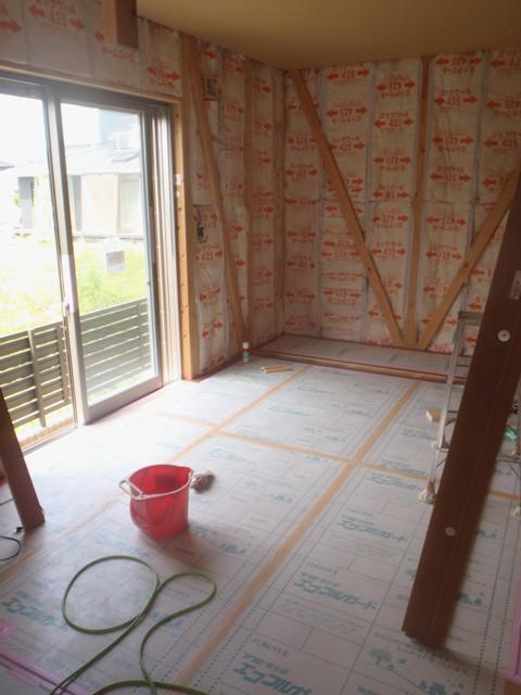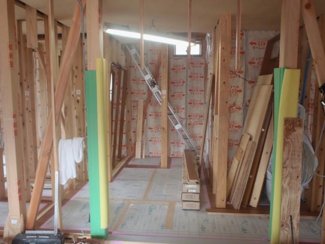 ☆先週の工事☆ 木工事(1階床無垢フローリング貼り、壁下地胴縁打ち、他) 外部給排水・雨水配管 左官工事(基礎幅木モルタル塗り) ☆今週の予定工事☆ 木工事(壁下地胴縁打ち、ドア開口枠取付、壁ボード、 下地合板貼り、他)
