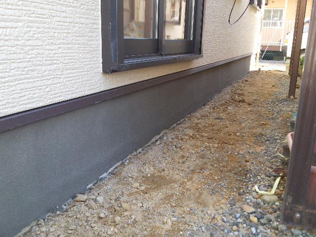 ・外部工事、基礎幅木モルタル塗り、給排水・給湯、雨水配管