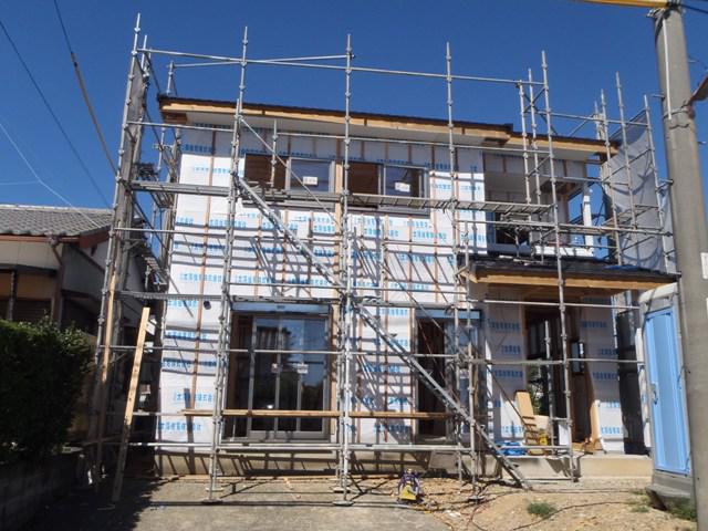 ☆先週の工事☆ 木工事(外壁下地、軒天下地組み及びケイカル板貼り、他) JIO外装下地検査 ☆今週の予定工事☆ 木工事(軒天ケイカル板貼り、床フローリング貼り、窓枠取付 他)