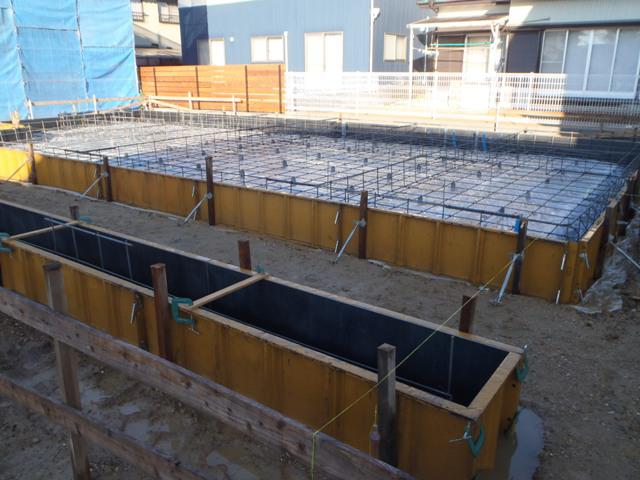 ☆先週の工事☆ 基礎工事(鉄筋加工・鉄筋組み、ベース型枠組み、 ベースコンクリート打ち、他) ☆今週の予定工事☆ 基礎工事(立ち上りコンクリート型枠組み及びコンクリート打ち、 型枠ばらし、他)
